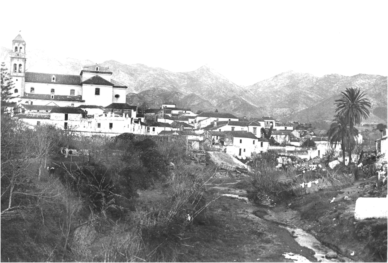 (fig. 24) Imagen del archivo Temboury. La torre Nueva y la cerca no se distinguen bien, y en el momento de la foto las estructuras que partían hacia el noreste de la ciudad estaban completamente destruidas. Ese era el punto de encuentro entre el río Huelo y el arroyo de la Represa.