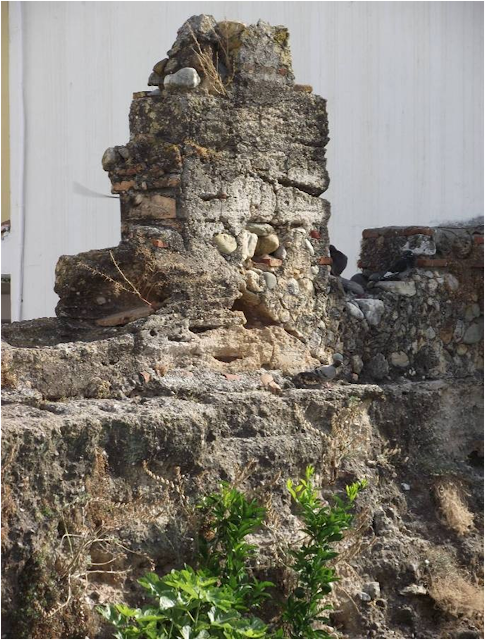 (fig. 22) La torre Nueva construida de tapial y la cerca parcialmente destruida construida con mampostería.